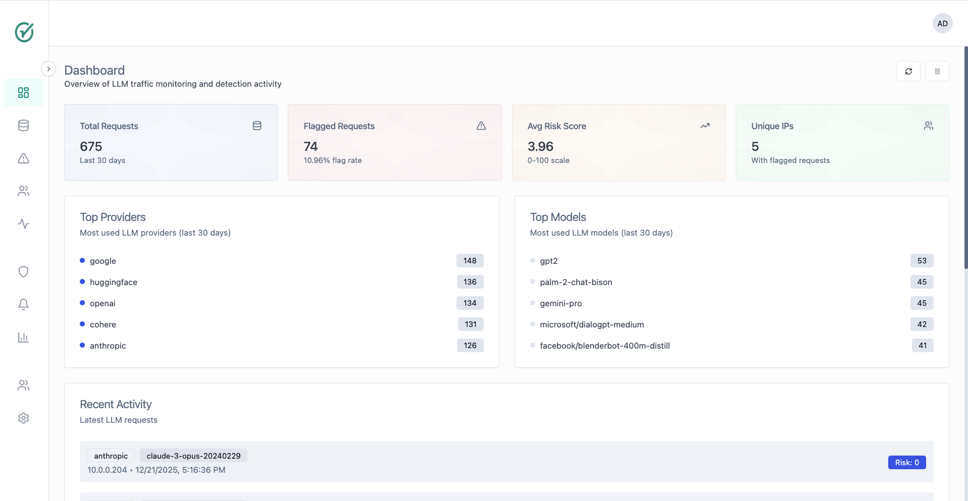 Gain complete visibility into your organization's LLM usage. Detect Shadow AI, prevent data leaks, and enforce security policies in real-time—ensuring safe adoption of AI across the enterprise.