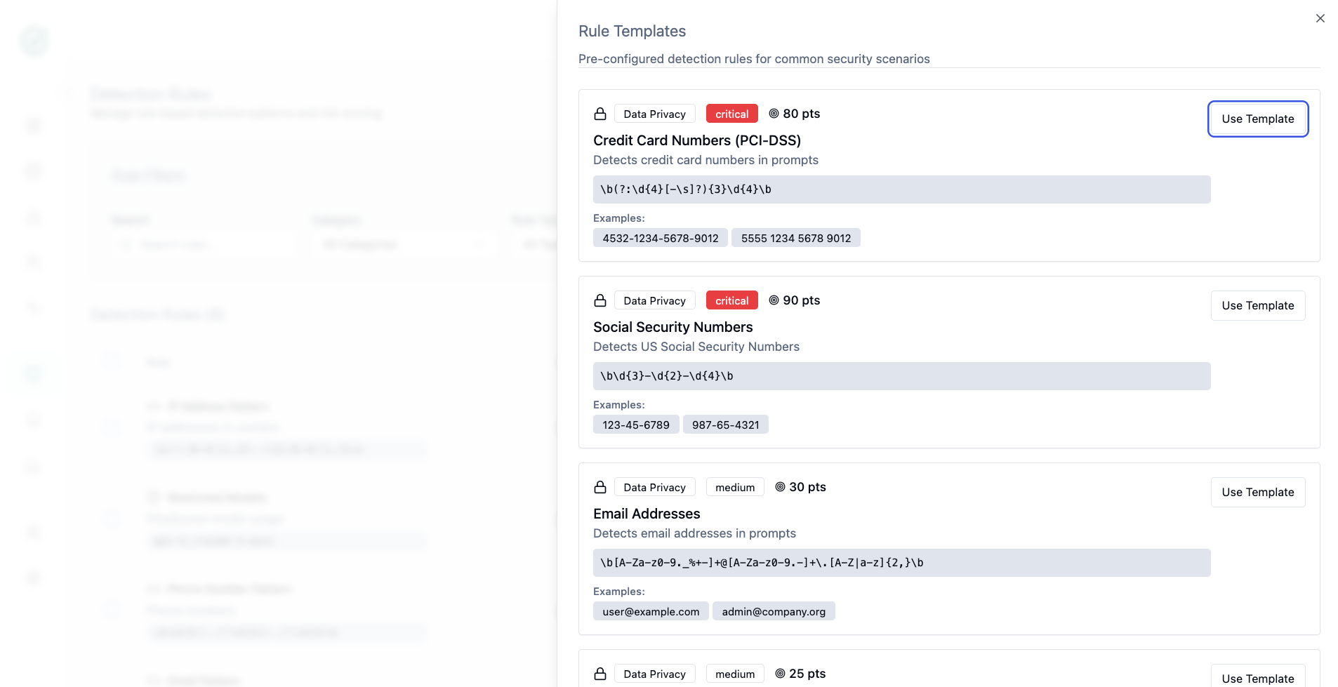 - Detect Shadow AI, identify unauthorized models, providers, or prompt patterns that violate policies.